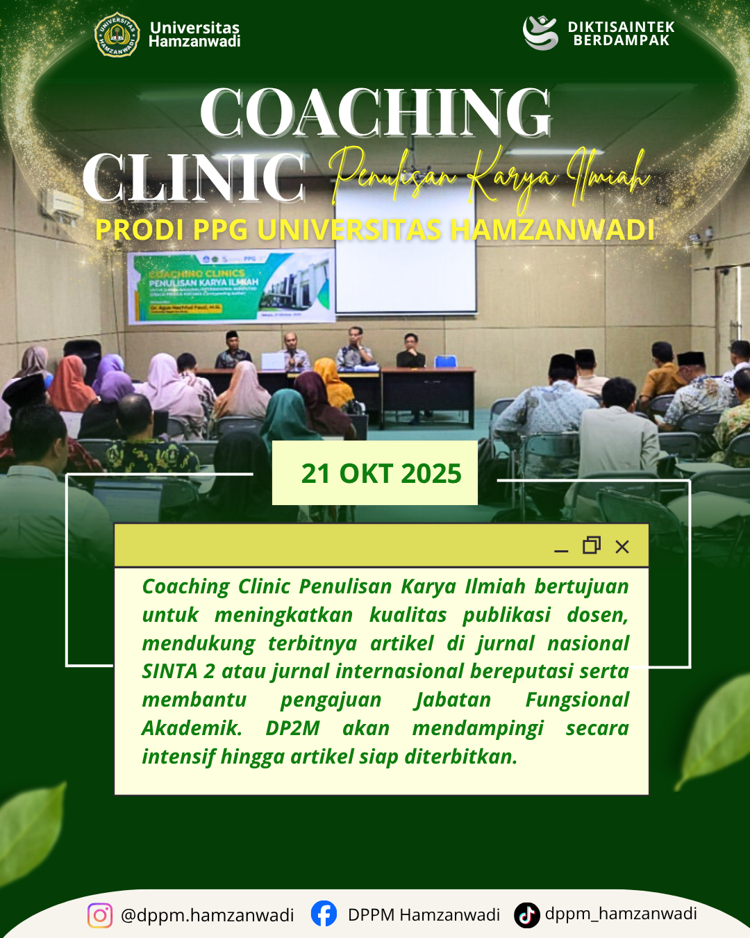 Admin Nov. 7, 2025, 12:24 p.m Kerjasama Universitas Hamzanwadi Hadir dalam Konsultasi Kelompok Terfokus Kesetaraan Gender KONEKSI Australia Indonesia Admin Nov. 7, 2025, 10:07 a.m Kerjasama KUPI dan Alimat Bersinergi dengan Universitas Hamzanwadi Menggelar Advokasi dan Edukasi Bahaya P2GP bagi Perempuan Admin Okt. 29, 2025, 2:41 p.m Publikasi Workshop Penulisan Artikel Ilmiah Berbantuan AI Digelar di Universitas Hamzanwadi Admin Okt. 27, 2025, 3:41 p.m Publikasi Tingkatkan Kemampuan Publikasi Ilmiah, Universitas Hamzanwadi Gelar Kuliah Umum Bersama Profesor dari Malaysia Admin Okt. 24, 2025, 10:15 a.m Berita Sosialisasi Program Riset Prioritas Dirjen Risbang Kemdiktisaintek Tahun Anggaran 2026 Admin Okt. 22, 2025, 1:46 p.m Publikasi Prodi PPG Universitas Hamzanwadi Sukses Melaksanakan Coaching Clinic Penulisan Artikel Ilmiah
